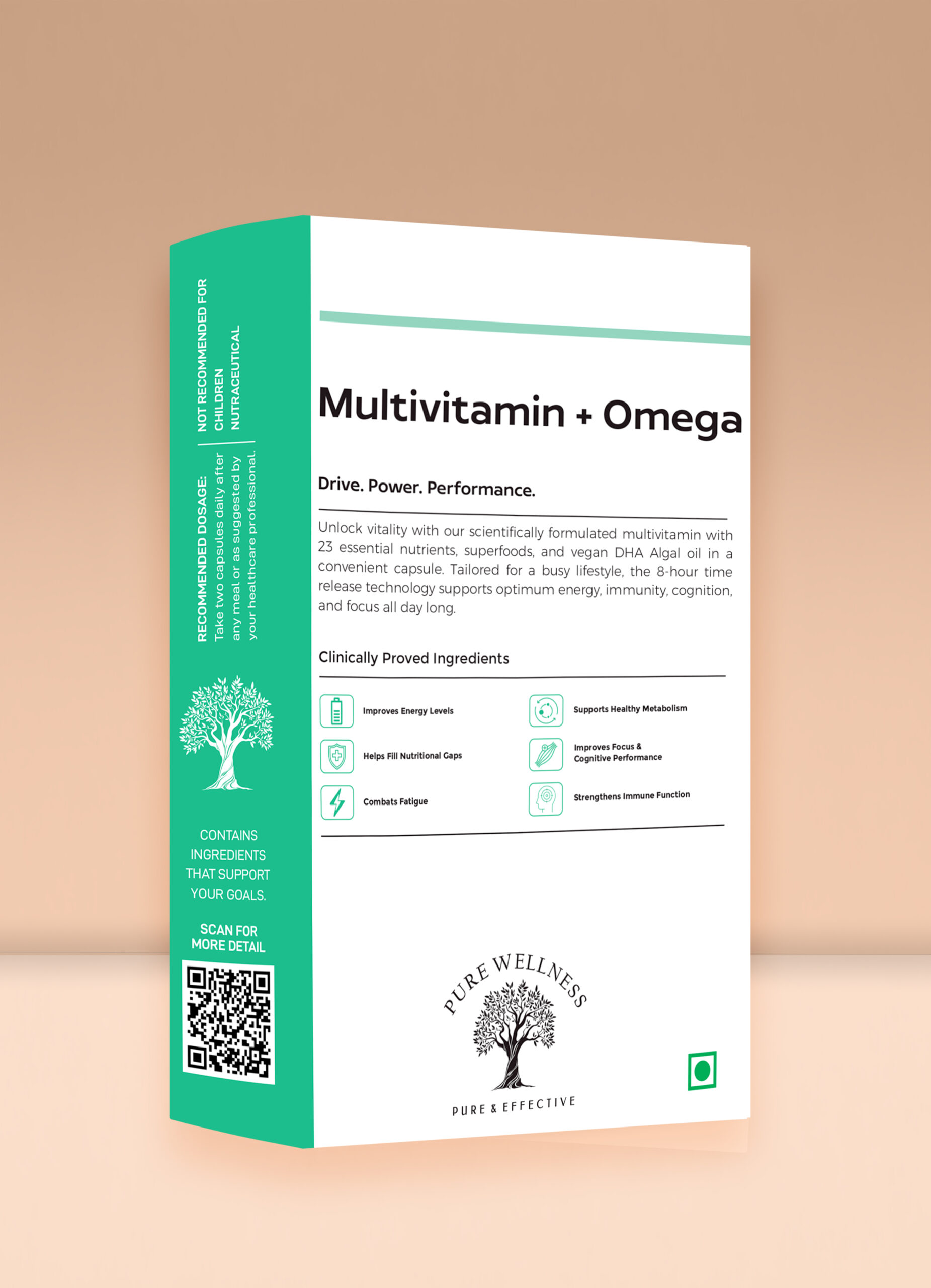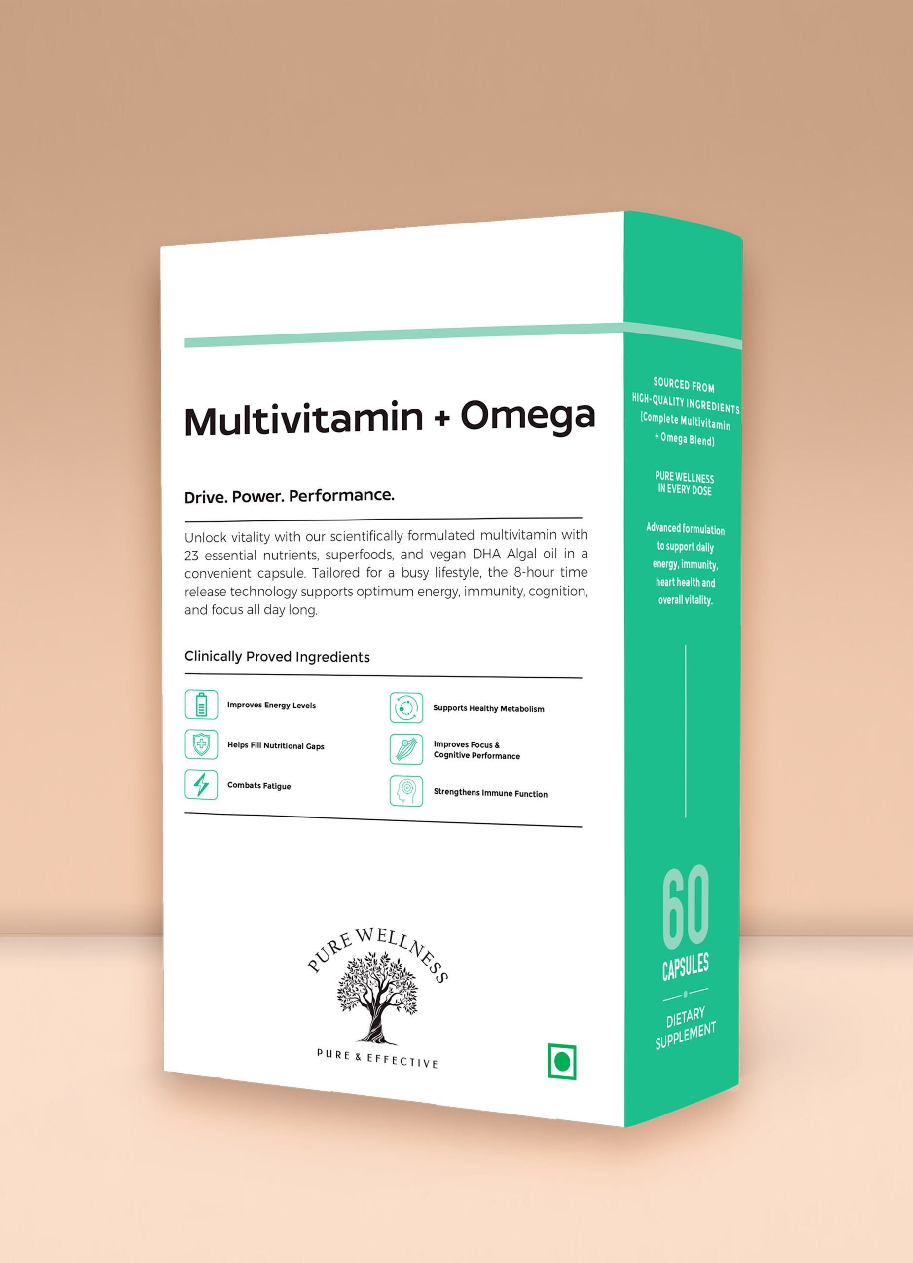 A perfect blend of essential vitamins, minerals, and Omega fatty acids to support heart health, brain function, and immunity. Your daily dose of complete wellness.